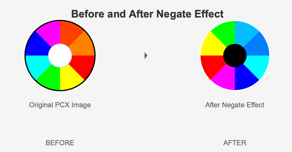 Example showing a PCX image before and after applying the negate option during PDF conversion.